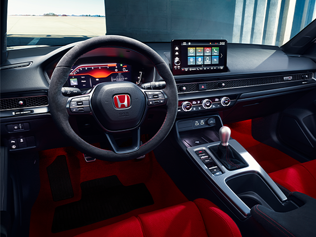 Das Interieur überzeugt mit einer hochwertigen Ausstattung und vollem Komfort. Während Sportsitze, der Schaltknauf aus Aluminium und Sportpedale die Rennsport-DNA verdeutlichen, ist der Type R dennoch der perfekte Begleiter im Alltag. Dafür sorgen der große Stauraum mit einem Kofferraumvolumen von bis zu 1.212 Litern, das Honda CONNECT Infotainmentsystem sowie die verbesserte Ergonomie der Sitze. Zusätzlich hat der Type R ein umfangreiches Paket an Honda SENSING Assistenzsystemen an Bord, um Ihre Sicherheit zu gewährleisten.